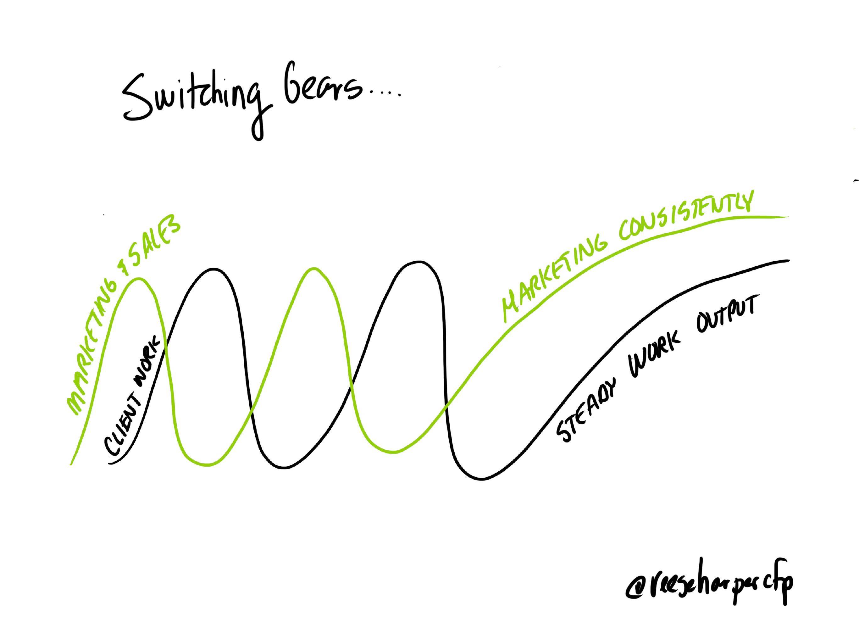 Whenever I felt overwhelmed by the work, I added support staff to increase my capacity. Then I focused on completing the work and improving my planning process. I started to notice a pattern. During my first few years, I concentrated on either 1) doing work, or 2) finding clients. But I neglected a consistent, repeatable effort towards marketing or sales.